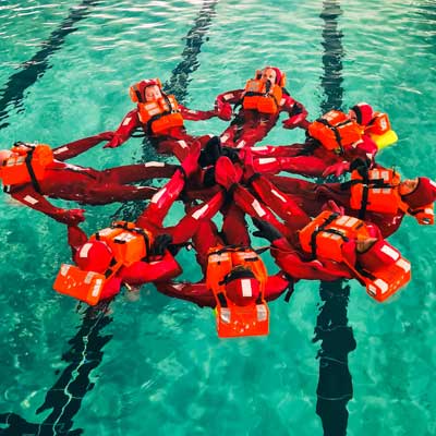 Hands-on swimming sessions to ensure water confidence and survival skills for maritime safety.